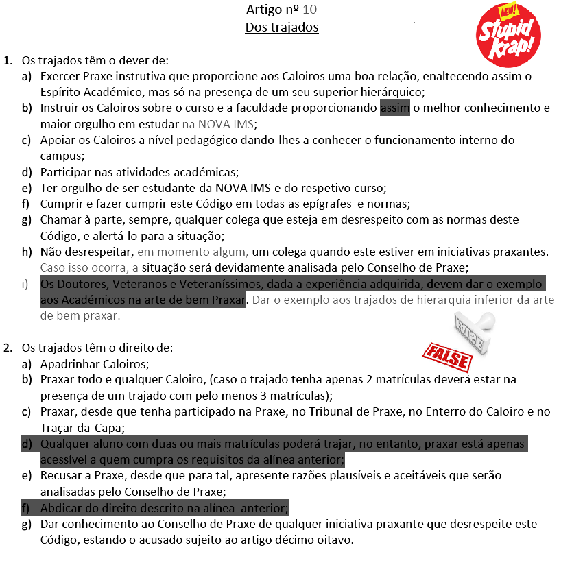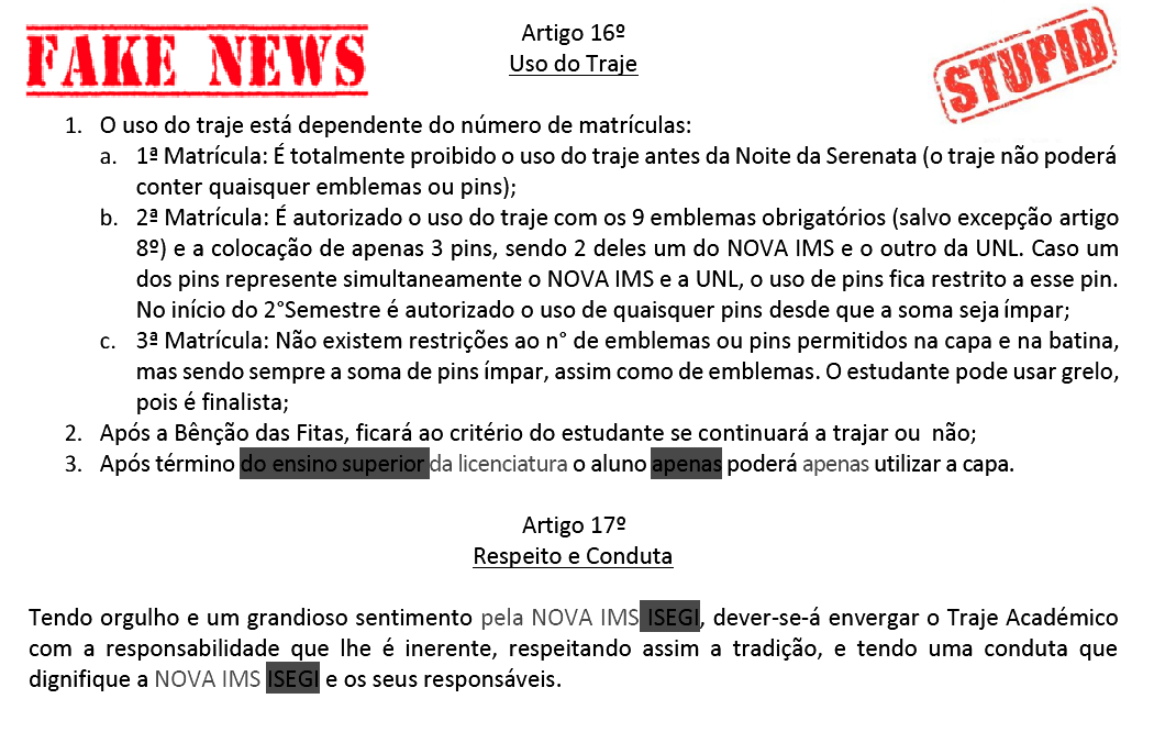 Notas ao Código de Praxe e Traje da NOVA IMS (ISEGI / UNL)