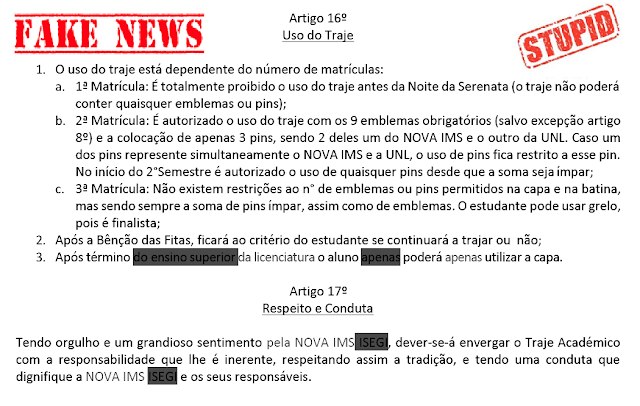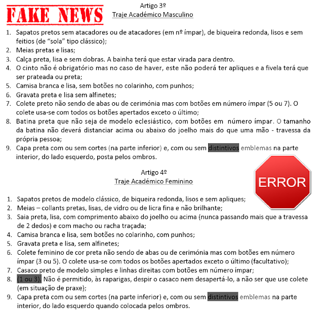 Sim, estamos em pleno 2025 e nessa instituição, já conhecida por argoladas contra a Tradição (como a questão dos números ímpares), dizem aos caloiros para retirarem as etiquetas do traje académico. Triste tanta ignorância numa instituição que é suposto ser frequentada por uma elite de estudantes.