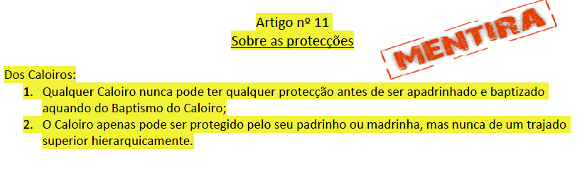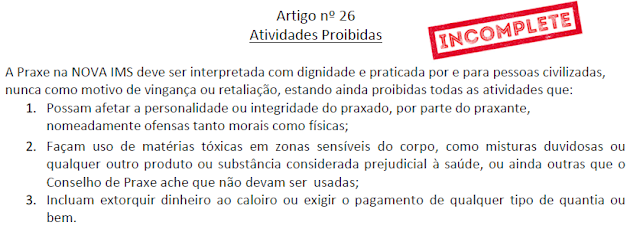A Tradição só contempla estas regras - ver AQUI. Todas as demais são invenção sem respaldo da tradição e, por isso, anti-Praxe!