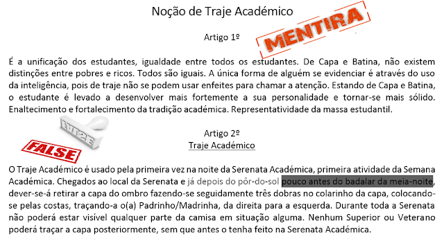 Esta é a lógica praxística dos que afirmam, estupidamente, que o Traje Académico serve para tornar todos iguais. Outros ainda querem colar-lhe significados e simbologias, mais ou menos romanceadas e ridículas, que ele nunca teve.
