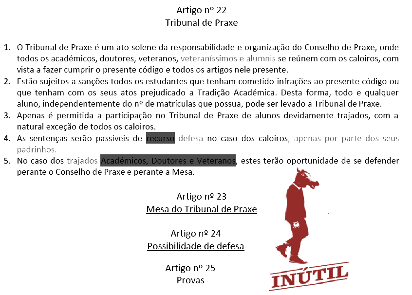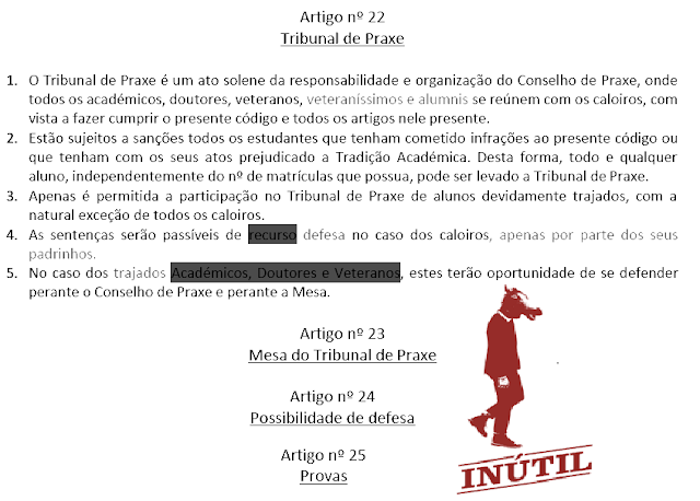 Naquela que é uma verdadeira babel praxística, a Invicta continua a mostrar mediocridade, sempre com a bênção do incompetente MCV (conjunto de parasitas da Praxe) - organismo que só aparece na Queima para tirar proveito e usufruir de mordomias do seu pseudo-estatuto.