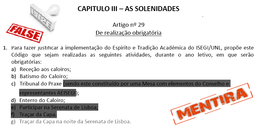 Na Faculdade de Ciências Médicas | Nova Medical School (Lisboa) registam-se ainda muitos lapsos conhecimento sobre Praxe. Vive-se ainda no tempo de pôr caloiros de joelhos e de mitos sobre números ímpares e quejandos. O erro, apesar de muito repetido, não se torna virtude por reiteração!