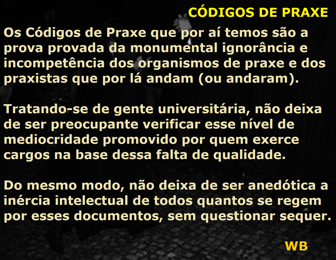 Infelizmente, outros códigos existem que contêm artigos que colidem com a legalidade (para não falar da colisão com a tradição ou o simples bom senso). Alguns estão, aliás, devidamente analisados no blogue, expondo uma triste realidade: a larga maioria nem para papel higiénico serve.