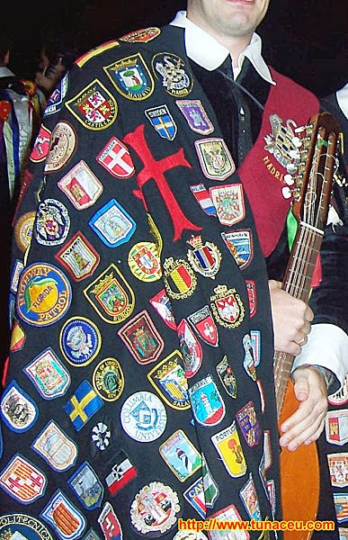 Os tunos compravam nas lojas de "souvenirs" os emblemas locais (cidade, país) e, muitas vezes, também, os recebiam das tunas congéneres ou instituições visitadas os respectivos escudos/emblemas (ou também os compravam na loja associativa, na reprografia ou secretaria caso existisse).
