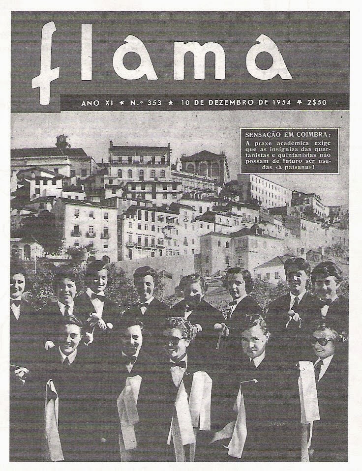 Parecia encontrada a solução, numa instituição onde a cultura histórica não legitimava de ânimo leve nem o tailluer, nem uma distinção formal entre modelo masculino e modelo feminino. A breve trecho, a evolução seria bem outra. Em 1951 as alunas do Teatro dos Estudantes (TEUC) preparam uma digressão ao Brasil, tendo decidido levar um conjunto prático que substituísse os custos e os incómodos habitualmente havidos com os vestidos de gala. Ficou decidido levar nas bagagens o tailleur preto, traje que em diferentes padrões cromáticos era então usado no Ocidente por enfermeiras militares e hospedeiras de aeronáutica civil. Nas revistas de moda, as estrelas de cinema e do musical deixavam-se fotografar com este tipo de fato. Entre 12 de Agosto e finais de Outubro de 1951 o TEUC actuou no Brasil e visitou a Universidade de São Paulo, onde deixou uma réplica da "cabra". De 1951 a 1954 não se sabe com rigor que nível de adesão o tailleur terá conhecido em Coimbra, que lhe possa ter grangeado ser mais do que o fato que as alunas do TEUC levaram ao Brasil. Uma coisa é certa, se estivesse popularizado e se fosse querido das estudantes, não teria havido necessidade de o impor por decreto. (...) Em face dos conhecimentos disponíveis ainda não é possível saber se as alunas da UP começaram a usar o tailleur preto em Março de 1916, ou se o movimento ficou confinado às liceais. Sabe-se, no entanto, que a feminilização do Orfeão Universitário desde ca. 1944-1945 esteve na origem da consagração do tailleur pelas orfeonistas portuenses. Na fotografia supra, do ano lectivo de 1946-1947, oriunda do espólio do Dr. Álvaro Andrade, é bem visível uma orfeonista com tailleur preto, conforme o figurino tubular da época, meias cor da pele, gravata e capa. Terá o tailleur debutado restritamente no Orfeão Universitário, com ulterior generalização na universidade?"