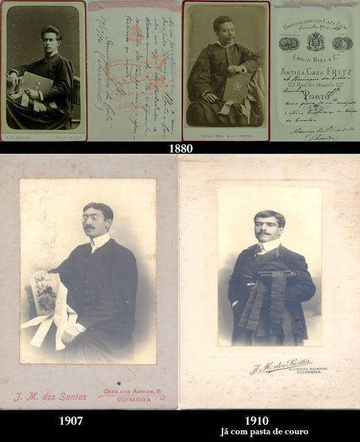 Simplificando: até às primeiras décadas do séc. XX, só os quintanistas usavam pasta - a pasta de luxo. Não existiam, portanto, pastas correntes para ir normalmente às aulas.